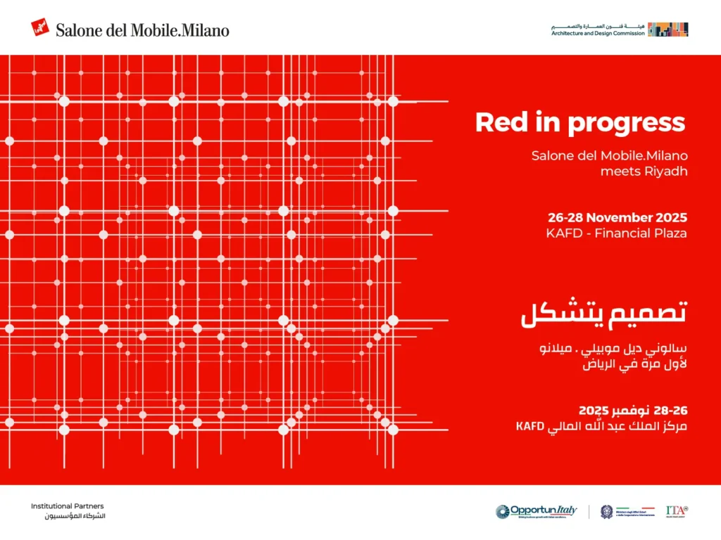 We are pleased to inform you that Listone Giordano will be among the more than 30 Italian companies selected to represent the excellence of Italian design at the Salone del Mobile in Saudi Arabia, taking place from November 26 to 28, 2025, in Riyadh. The event, titled “Red in Progress. Salone del Mobile.Milano meets Riyadh,” will be held in the King Abdullah Financial District and will feature a scenographic installation curated by the architectural firm Giò Forma, along with a business lounge designed by Piero Lissoni.